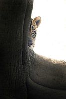 Koop de foto Peekaboo - Loerende Jaguar vanachter een boom van Dirk-Jan Steehouwer op canvas, aluminium dibond, (ingelijste) fotoprint, behang en ArtFrame, op maat geprint in Fine-Art kwaliteit.