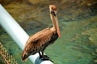 Deze pelikaan is op 31 juli 2016 gefotografeerd in het Seaquarium in Curaçao.