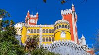 Het kleurrijke Peña Paleis in Sintra, dicht bij Lissabon in Portugal.