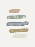 Een abstract kunstwerk van penseelstreken in verschillende lengtes en in verschillende aardetinten zoals bruin, blauw, beige en groen.