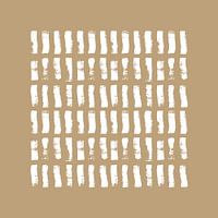 Een abstract schilderij van geometrische vormen in wit op goud met een moderne en stedelijke uitstraling.