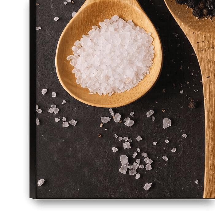 Houten lepels met peperkorrels en zeezout