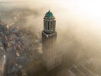 Peperbus kerktoren in Zwolle boven de mist van Sjoerd van der Wal Fotografie