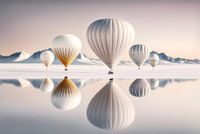 Fotokunst in pasteltinten met heteluchtballonnen in een winters landschap.