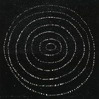 Dit kunstwerk straalt de essentie van Japandi-stijl uit, met zijn minimalistische en elegante uitstraling. De cirkelvormige patronen op de donkere achtergrond symboliseren de oneindigheid en het universum, terwijl de organische, onvolmaakte stippen de Wabi-Sabi-filosofie weerspiegelen. Het werk nodigt uit tot een gevoel van rust en sereniteit, perfect passend in een interieur dat eenvoud en harmonie omarmt. De subtiele onregelmatigheden in het patroon benadrukken de schoonheid van imperfectie, waardoor het een krachtig visueel statement maakt.
