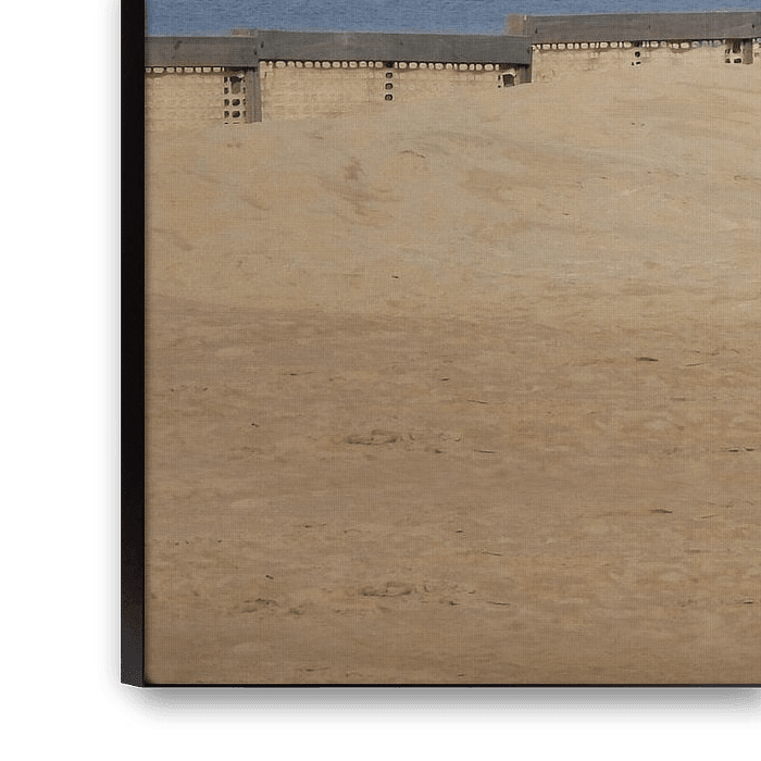 De bewolkte hemel contrasteert prachtig met het gouden zand en zorgt voor het perfecte kader op uw muur!