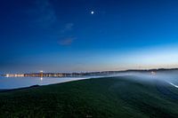 Tijdens een windstille avond op het wad. kwam er over de dijk vanuit de polder mist, dat was echt een geweldig gezicht. gelukkig kon ik het mooi vast leggen