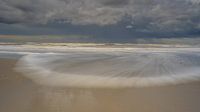 Het is leuk aan het strand bij afgaand tij te expirimenteren met langere sluitertijden om zodoende de beweging van een aanspoelende golf vast te leggen.
