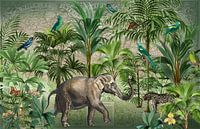 Ze passen allemaal prachtig bij elkaar in dit plaatje. Flora en fauna ontmoeten elkaar onder palmbomen en bespreken hoe ze hun paradijs kunnen behouden voor de volgende generaties. Zonder de mens, die leeft alsof er geen morgen is. Alle historische illustraties in dit plaatje komen uit een tijd dat men bezig was een encyclopedisch overzicht van de natuur samen te stellen. Het zet je aan het denken dat in de tussentijd veel planten en dieren alleen als plaatjes verschijnen.