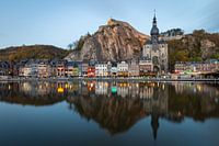 Het stadje Dinant wordt perfect gereflecteerd in het water van de rivier