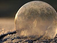 Het gebeurt niet vaak dat het in Nederland koud genoeg is om zeepbellen te laten te bevriezen, maar als het weer dan een keer meewerkt is dit geweldig om te doen. Het moet goed koud zijn, het liefst min drie of kouder, en er moet weinig staan. En dan hoefje alleen nog maar de juiste ondergrond te zoeken en te blijven proberen. Deze opname is gemaakt net na zonsopkomst, meestal het koudste punt van de nacht. Hierdoor staat de zon nog laag en krijg je mooi licht in de zeepbellen. AL direct na het blazen beginnen zich de eerste ijskristallen en ijsbloemen te vormen, wat een prachtig schouwspel oplevert. Eenmaal bevroren is de bel erg kwetsbaar en spat deze uiteen bij het minste zuchtje wind.