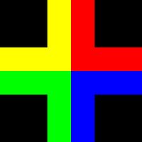 Permutatie met rood, groen, blauw en geel. Achtergrond Zwart (D) of wit (W).