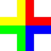 Permutatie met rood, groen, blauw en geel. Achtergrond Zwart (D) of wit (W).