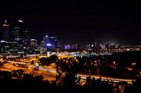 s Avonds uitkijken over Perth, West-Australië, is een bijna magische ervaring en Kings Park is de plaats bij uitstek om dat te kunnen doen. De skyline op de achtergrond en Elizabeth Quay zijn duidelijk zichtbaar.