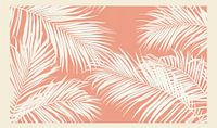 Dit trendy kunstwerk biedt een zachte en subtiele interpretatie van tropische palmbladeren tegen een zalmroze achtergrond.