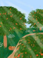 Koop dit vogel kunstwerk Perzik Tuin van Aliya Putrus als print op canvas, aluminium dibond, (ingelijste) fotoprint, behang en ArtFrame. Voor jou op maat geprint in Fine-Art kwaliteit.