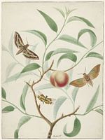 Perzik aan een tak met twee uitheemse vlinders en een libelle, Hermanus de Wit (1774)