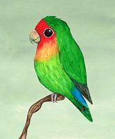 Koop dit vogel kunstwerk Perzikkopagapornis aquarel van Bianca Wisseloo op canvas, aluminium dibond, (ingelijste) fotoprint, behang en ArtFrame, op maat geprint in Fine-Art kwaliteit.
