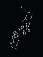 One-line illustratie van een vrouwen hand en dier op een zwarte achtergrond.