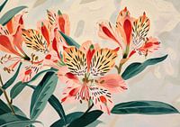 Details: bloemen, abstract, modern, roze, groen, wit, oranje, bladeren, natuur, kunst