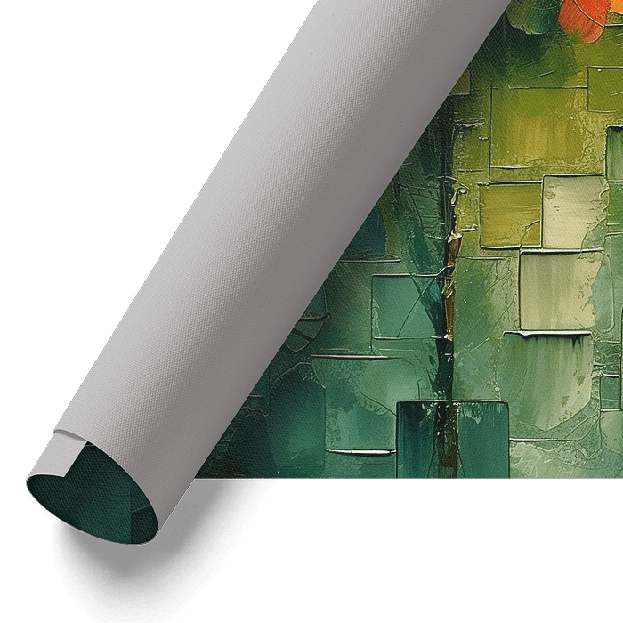 Details: abstract, bloemen, kleurrijk, modern, canvas, schilderij, kunst, decoratie, textuur, groen