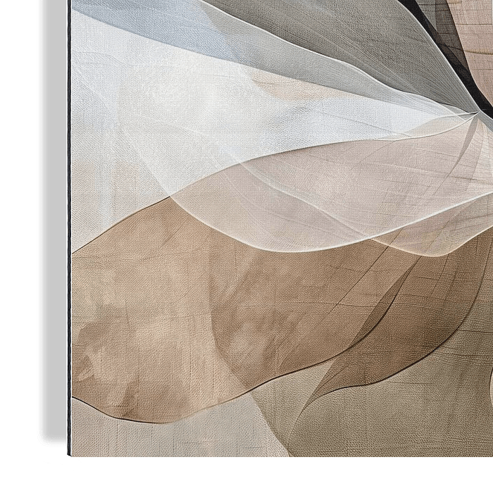 Abstracte bloem in aardetinten op een grove canvas textuur.