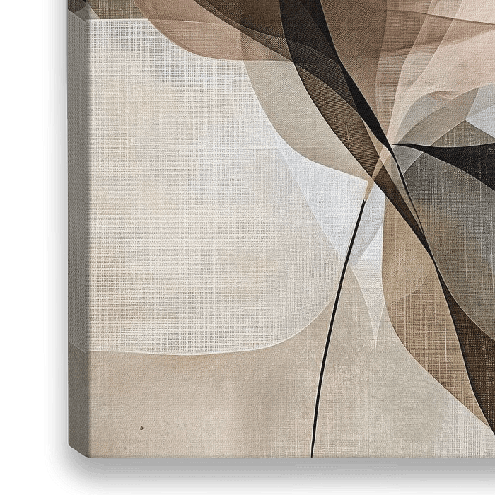 Abstracte bloem in aardetinten op een grove canvas textuur.