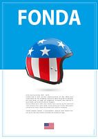 Prenten met de persoonlijke valhelmen van beroemde acteurs die autocoureurs en motorrijders speelden in de jaren 60 en 70.