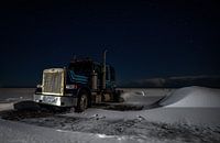 Amerikaanse Vrachtwagen in IJslands Landschap in de Nacht