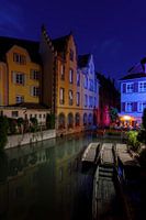 Historische architectuur in Petite Venise aan de oever van de Lauch in Colmar, Elzas, Frankrijk in de late avond.