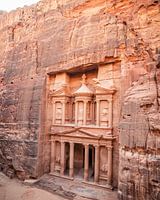 Het prachtige bouwwerk van Petra in Jordanië. Eén van de 7 wereldwonderen. Gigantisch grote kerk uitgehakt in de bergen/rotsen.