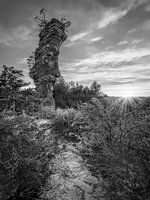 Rotsen in het Pfälzerwald bij zonsondergang in zwart-wit .