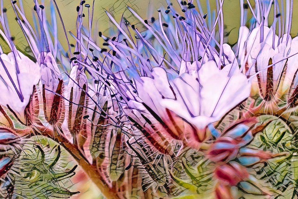 Digitale bewerking van een close-up foto van deze bijenplant.