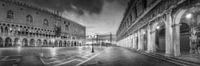 * DOGENPALAST * Zwart-wit reisfotografie. Sfeervol Venetië op een vroege ochtend. Piazza di san Marco / San Marcoplein met Dogenpaleis bij blauw uur in de zonsopgang.