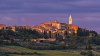 De avond valt over Pienza, een klein maar prachtig stadje ten zuidoosten van Siena in Val d'Orcia in het Toscaanse landschap van midden-Italië.