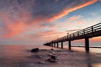 De pier in Kühlungsborn bij zonsopgang. Lange blootstelling op het strand