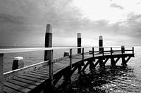 Houten steiger, kust, zee, dramatische lucht, bewolkte lucht, horizon, hoog contrast, zwart-wit foto, zwart-wit fotografie, architectuurfoto, horizontaal beeld, natuur, landschapfoto, texel, nederland, Rob Blok Photo