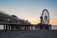 Pier Scheveningen reuzenrad bij zonsondergang vanaf het strand