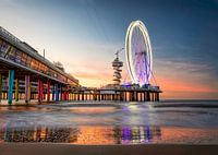 Foto van de pier in Scheveningen in de avond, net na zonsondergang. Foto gemaakt vanaf het strand.