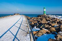 Pier aan de Oostzeekust in Warnemünde in de winter van Rico Ködder