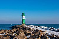 Pier aan de Oostzeekust in Warnemünde in de winter.