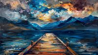 Pier onder de wolken abstract panorama schilderij die een luxueuze toevoeging zal zijn aan elke ruimte. Met zijn unieke en stijlvolle uitstraling is het een ware eyecatcher. De schitterende kleuren en het bijzondere ontwerp maken dit kunstwerk 100% uniek en origineel. Het is de perfecte fotoprint om je interieur helemaal af te maken.