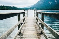 Houten pier op het Eibsee meer in de Duitse Alpen