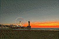 Hang de herkenbare stijl van De Schreeuw in uw huis, toegepast op de Pier van Scheveningen. Deze illustratie is tot stand gekomen met stijloverdracht van Slimme Kunst.