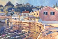 Loggos, bekend vanwege haar schoonheid in eenvoud. Gelegen aan de oostkust van het Ionische eiland Paxos liggen de pierhuisjes met horeca er kleurrijk en vredig bij. Het is hier in de zomer bloedheet. Lokale specialiteiten brengen verkoeling onder de grote parasols. Turend over de zee richting het vaste land van Griekenland kom ik hier…