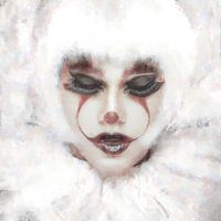 Impressionistisch schilderij, portret van een vrouw geschminkt als clown