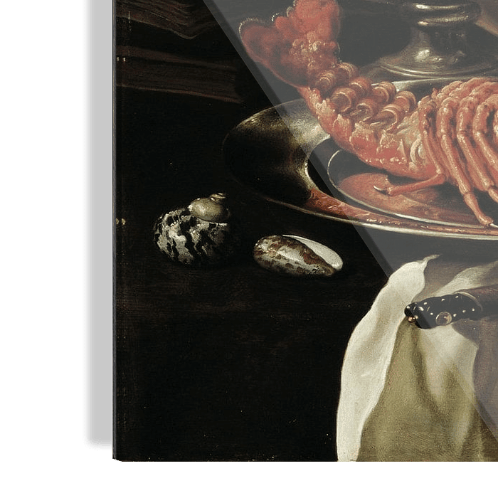 Koop Pieter Claesz - Stilleven met zilverwerk en kreeft 1641 als reproductie op canvas, aluminium dibond, (ingelijste) fotoprint, behang en ArtFrame, op maat geprint in Fine-Art kwaliteit.