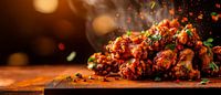 Koop de foto Pikante, dampende kippenvleugels - een moment van genot van Poster Art Shop op canvas, aluminium dibond, (ingelijste) fotoprint, behang en ArtFrame, op maat geprint in Fine-Art kwaliteit.
