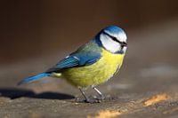 Pimpelmees (Cyanistes caeruleus) in de winter in het natuurreservaat Mönchbruch bij Frankfurt, Duitsland.