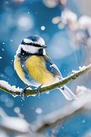 Pimpelmees (Cyanistes caeruleus) in de winter